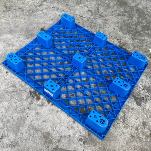 - Pallet nhựa chân cốc 1200x1000x145mm màu xanh dương có khả năng chống thấm nước, chống cháy hay mối mọt rất thích hợp để kê và lưu trữ hàng hóa, bảo vệ hàng hóa khỏi dính đất cát, bẩn ẩm mốc